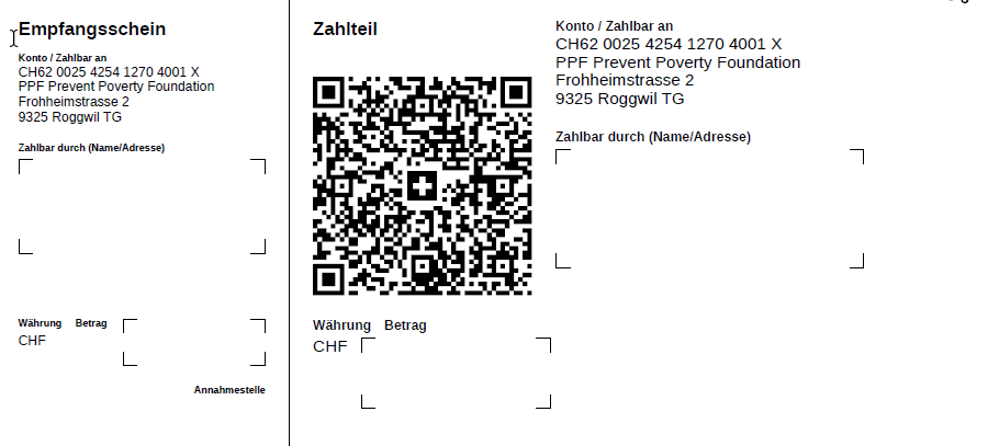 Bankverbindung PPF Prevent Poverty Foundation: